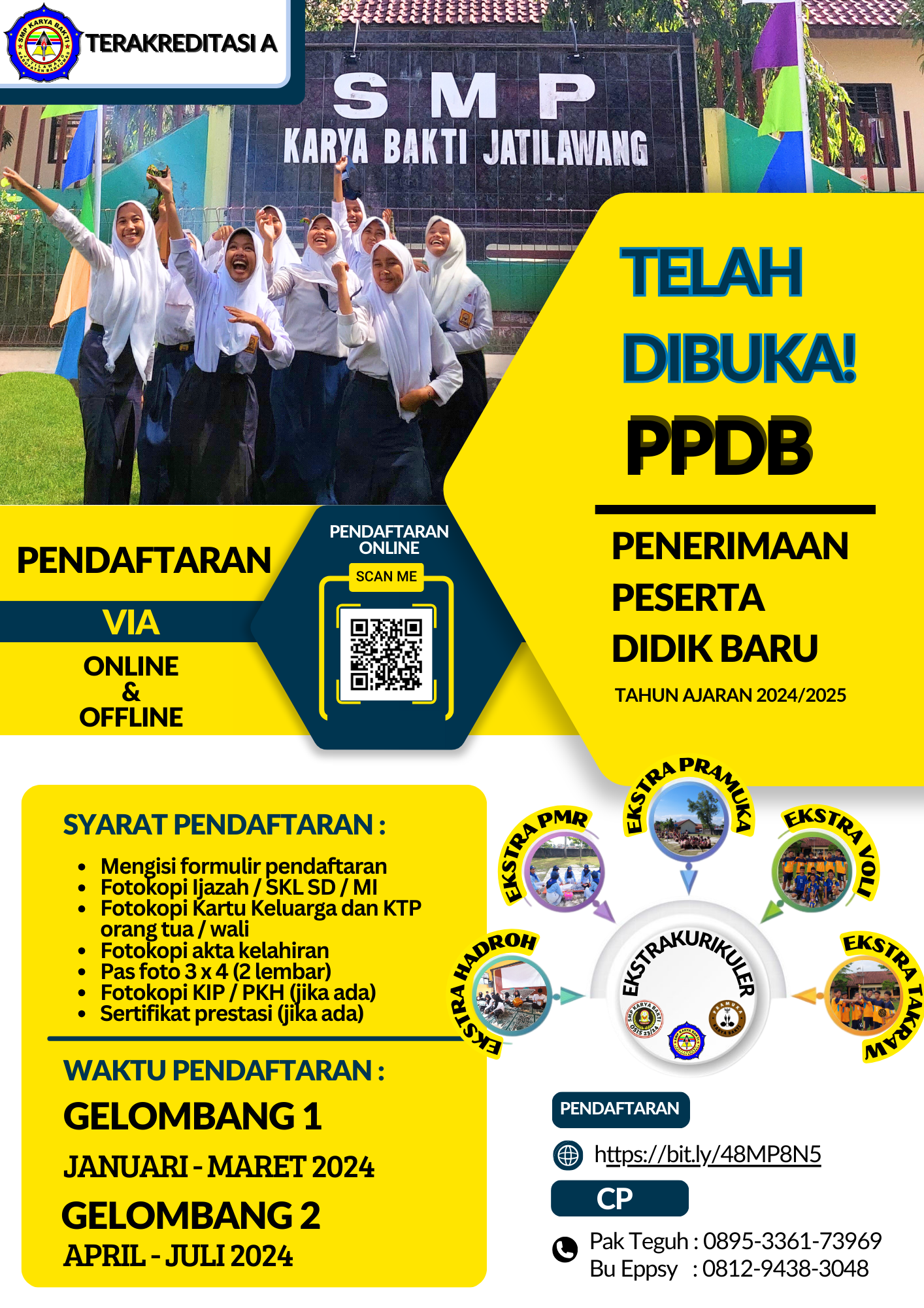 Penerimaan Siswa/Siswi Baru SMP Karya Bakti Jatilawang Tahun Pelajaran 2024/2025